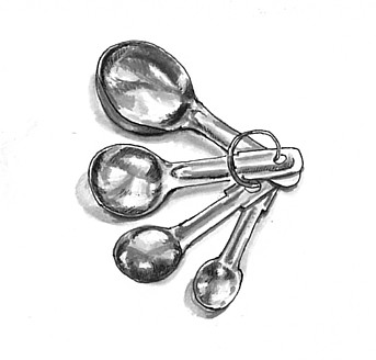 Beautiful drawing, nice reflections. I like that these metal spoons aren’t perfectly new and round. They look real to me. I believe they are metal measuring spoons! I own a set similar to these, and don’t use them much either, but they also remind me of baking something sweet.